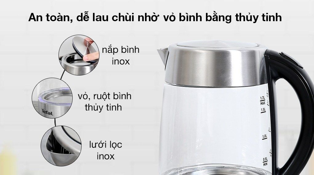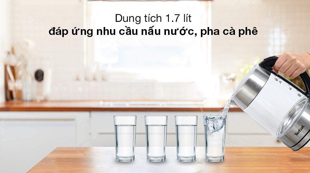 Ấm siêu tốc Tefal KI772D38 được thiết kế với dung tích chứa lên đến 1,7 lít, đáp ứng tốt nhu cầu sử dụng nước nóng cho các sinh hoạt hàng ngày. Ngoài ra ấm còn thể hiện mức độ nước để bạn dễ quan sát: