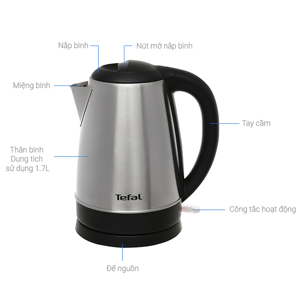Ấm siêu tốc Tefal có thiết kế đẹp, chắc chắn với toàn thân bên trong và ngoài được làm bằng kim loại chống gỉ, an toàn khi chạm vào, không bị phỏng, giúp an toàn khi sử dụng. Ấm rất phù hợp với mọi không gian của ngôi nhà bạn.