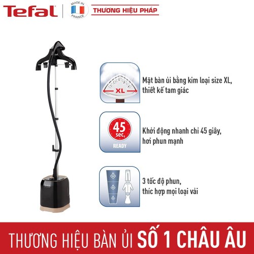 Bàn ủi hơi nước Tefal với thiết kế dáng thẳng đứng, kiểu dáng độc đáo, sản phẩm này sẽ giúp việc ủi quần áo của bạn trở nên dễ dàng và thoải mái hơn so với những loại bàn là thông thường đang có trên thị trường hiện nay. Ngoài ra bàn ủi còn có móc treo đồ giúp ủi quần áo dễ dàng hơn, tiết kiệm thời gian và công sức.