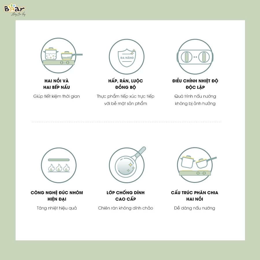 Bộ Bếp Điện Đôi Bear Kèm Nồi Chảo Đa Năng Hấp Luộc Chiên Tiện Lợi Tiết Kiệm Chi Phí Dễ Vệ Sinh SB-BD02N