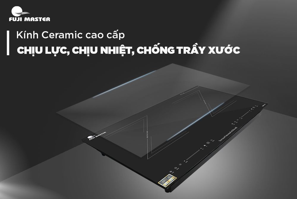 Mặt trước và mặt sau Bếp điện từ đôi Fujimaster FJM-2211 được thiết kế tỉ mỉ từng đường nét. Mặt bếp làm bằng kính Ceramic cao cấp siêu bền, chịu lực va đập tốt, chống trầy xước, chịu nhiệt sốc nhiệt lên đến 750 độ C.