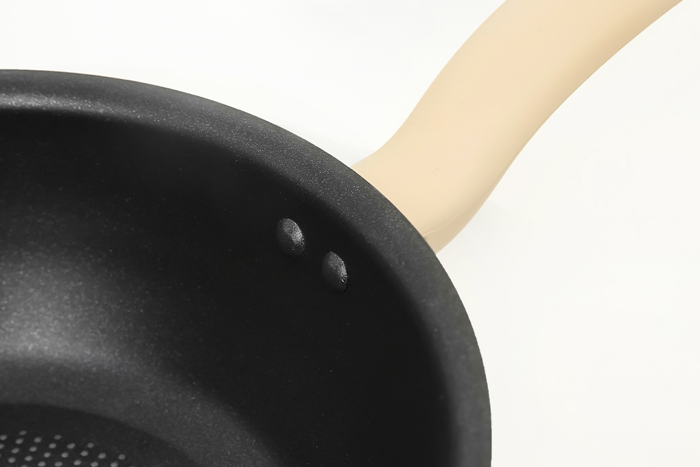 Lòng chảo được phủ lớp chống dính Titanium siêu bền, giúp món ăn không bị bám dính, vừa không chứa PFOA đảm bảo an toàn sức khỏe, vừa dễ dàng vệ sinh. Lòng chảo có vòng báo nhiệt cho biết nhiệt độ chiên rán lý tưởng.