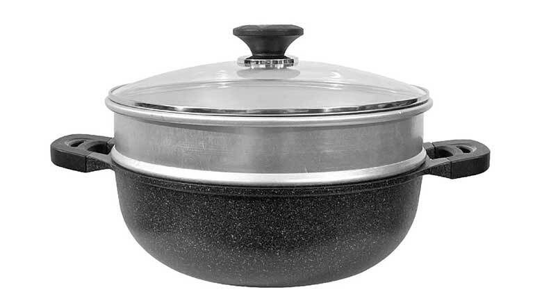 Chảo đá 2 quai đa năng KW-32MSI không chỉ làm được những món ăn nấu, chiên, xào mà còn có thể hấp được nhờ xửng hấp tặng kèm.