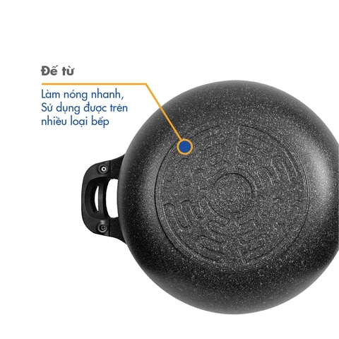 Phần đế có thiết kế hoạ tiết chìm nổi tăng diện tích tiếp xúc nhiệt lên bề mặt của chảo làm cho chảo nóng nhanh hơn đồng thời cũng tiết kiệm điện.