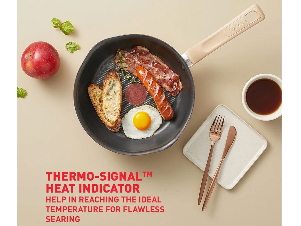 Lòng chảo có tính năng báo nhiệt thông minh Thermo-Signal - đặc trưng của sản phẩm Tefal sẽ đổi màu khi chảo đạt đến nhiệt độ lý tưởng giúp bạn nấu ăn ở nhiệt độ hoàn hảo.