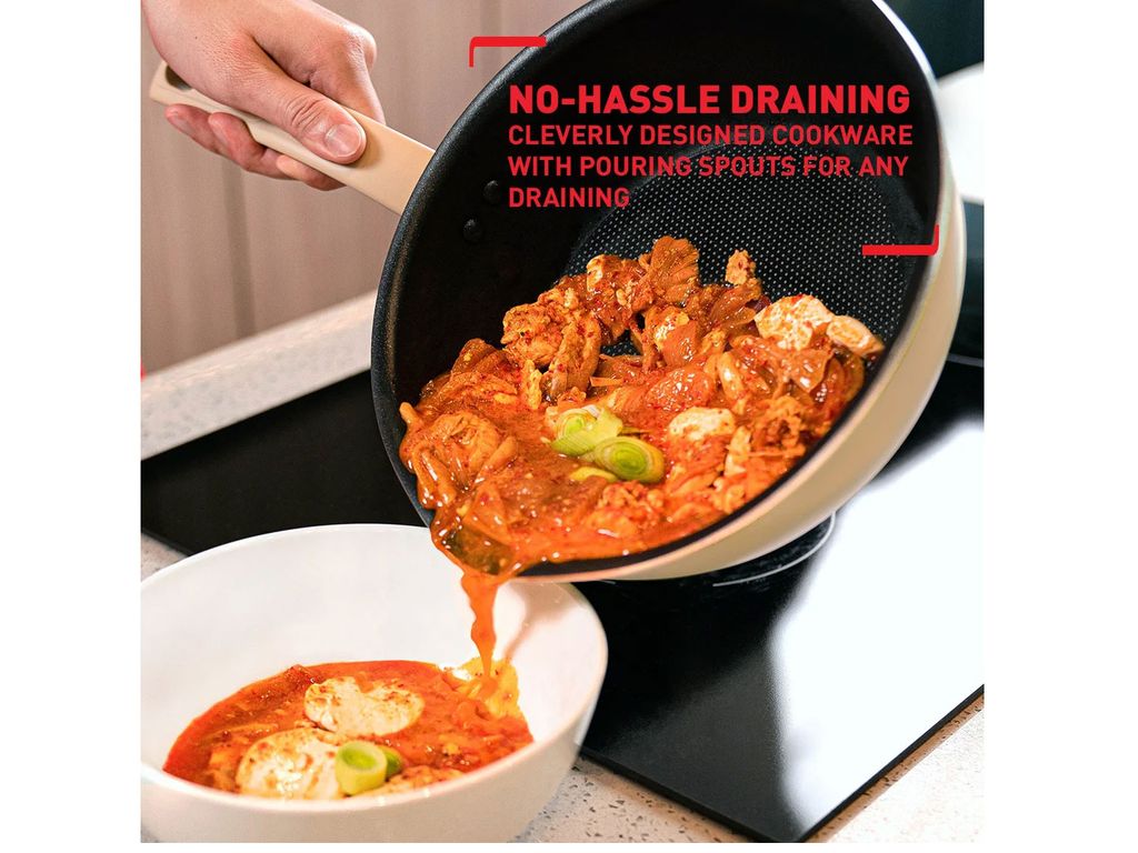 Chảo Tefal G1672524 có lòng chảo sâu giúp chị em có thể làm được rất nhiều món ăn như thịt xông khói, ốp trứng, nấu, chiên, xào...