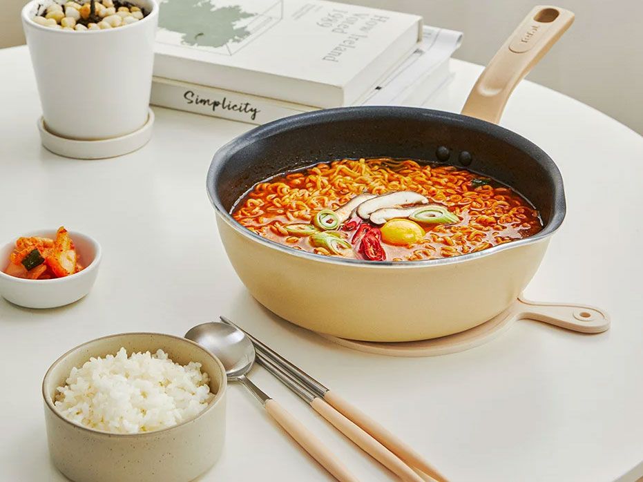 Chảo chống dính dùng được cho cả bếp gas, bếp từ, bếp hồng ngoại giúp linh hoạt trong việc nấu ăn.