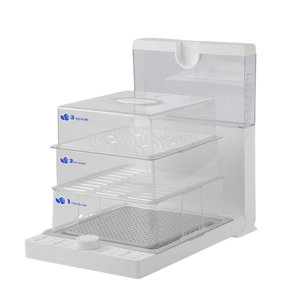 Các tấm ngăn giữa được làm từ vật liệu PPO (an toàn với sức khỏe người dùng) cùng thiết kế các lỗ nhỏ cho hơi nước bốc lên giúp làm chín thực phẩm đều hơn.