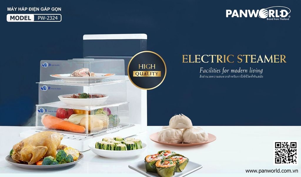 Ưu điểm lớn nhất của chiếc Máy hấp điện PANWORLD PW-2322 chính là có tới 3 tầng hấp với dung tích lên tới 18,8 lít nhưng lại vô cùng gọn gàng, không tốn nhiều diện tích của căn bếp. Chị em có thể thoải mái hấp được nhiều món cùng một lúc.