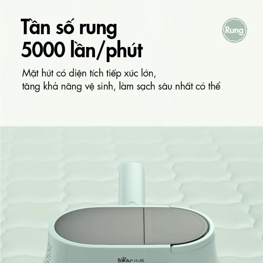 Máy hút bụi cầm tay ga giường Bear CMY-B03M1 có khả năng loại bỏ 99% bụi bặm và các loại vi khuẩn trú ngụ lâu ngày trên giường, nệm. Với 4 chức năng chính: hút, rung, sấy, diệt khuẩn.