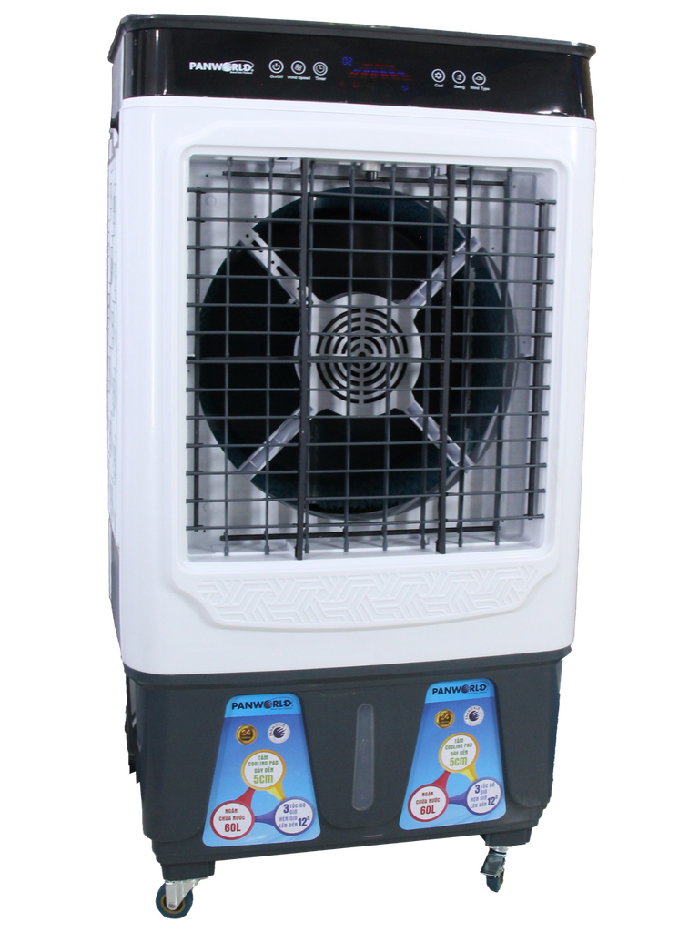 Màn hình hiển thị LCD dễ dàng quan sát khi sử dụng, đèn led nhiều màu đẹp mắt và sang trọng. Máy làm mát Panworld PW-2811 có kèm theo remote điều khiển từ xa, chỉ một vài thao tác đơn giản bạn đã chọn được chế độ hoạt động phù hợp. Ngoài ra, với bánh xe kéo giúp cho việc di chuyển quạt từ nơi này đến nơi khác nhẹ nhàng hơn và nhanh chóng hơn.