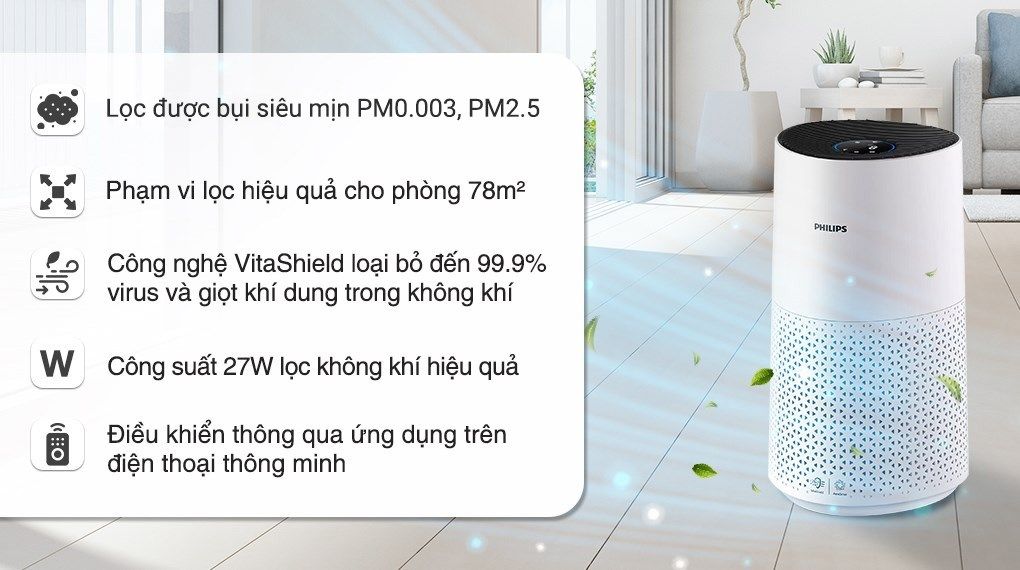 VitaShield - loại bỏ hầu hết các chất gây ô nhiễmAeraSense - phản hồi chất lượng không khí theo thời gian thực