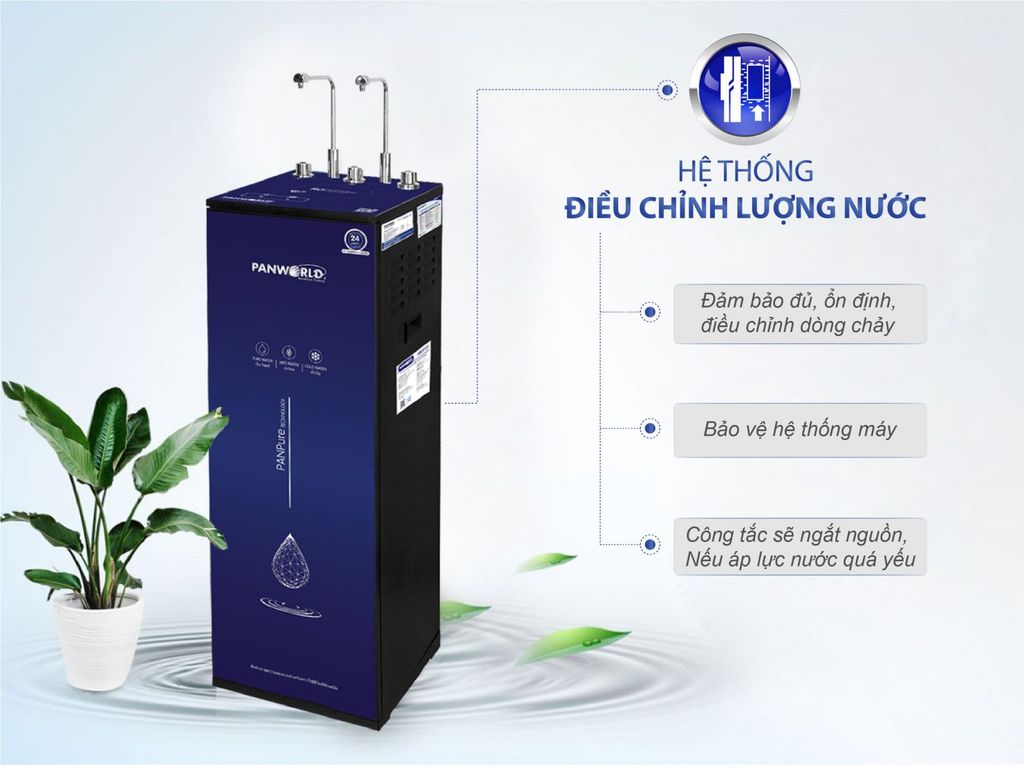 Máy lọc nước nóng lạnh nguội Panworld PW-9101 có cảm biến lưu lượng nước còn gọi là hệ thống điều chỉnh lượng nước, đảm bảo lượng nước đầu vào ổn định, luôn có đủ nước để làm nóng trước khi hoạt động, giúp điều chỉnh dòng chảy trong đường ống, giữ vai trò bảo vệ hệ thống máy.