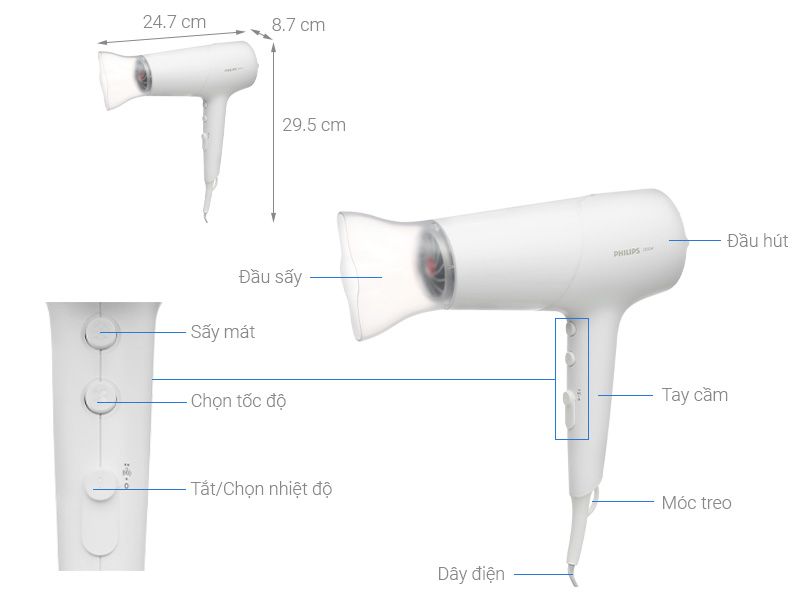 Sấy ion làm mượt tócCó móc treoĐầu sấy hẹp tạo kiểu tóc