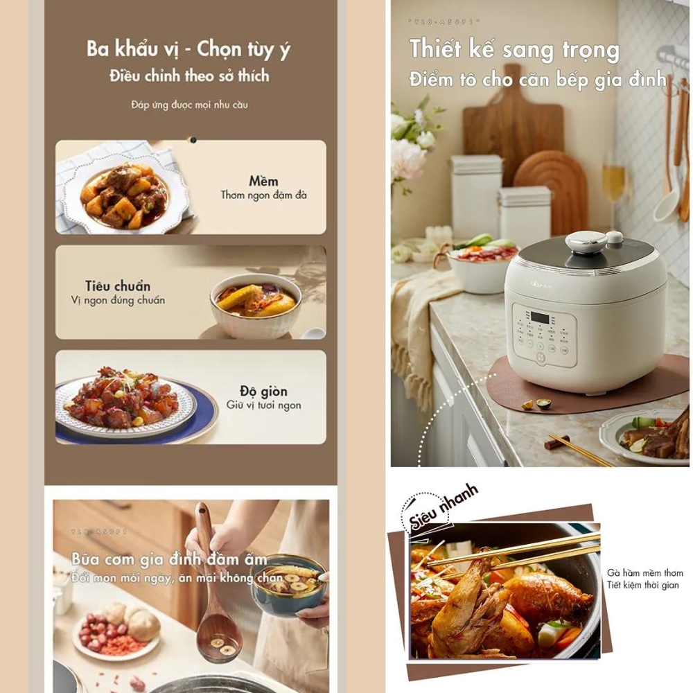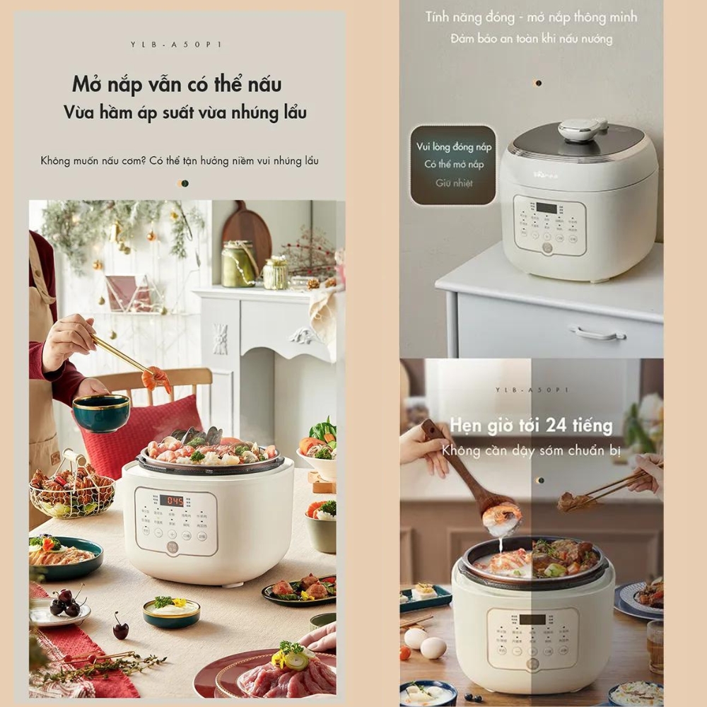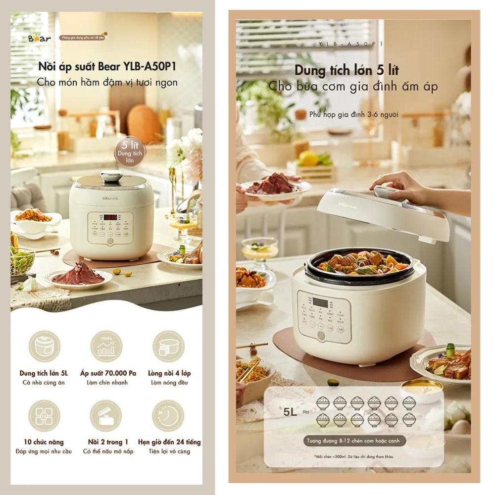 Dung tích lớn 5L tương đương 8 – 12 chén cơm hoặc canh với áp suất 70.000 Pa làm chín nhanh thức ăn.