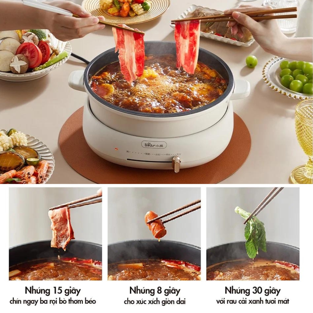 Nồi lẩu điện có công suất 1500W nấu chín nhanh gắp liền tay.