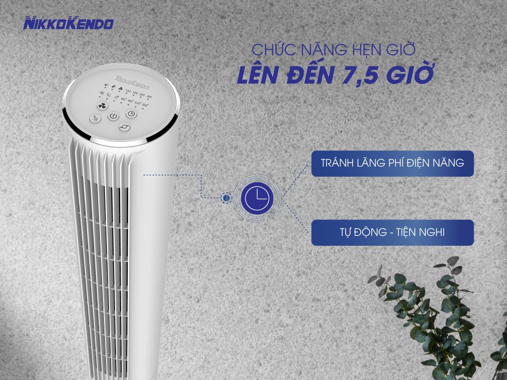 Bạn muốn tắt quạt khi đêm khuya trời trở lạnh nhưng lại làm cho giấc ngủ gián đoạn. Chức năng hẹn giờ giúp bạn thực hiện điều đó một cách tự động mà không làm ảnh hưởng đến giấc ngủ của bạn. Ngoài ra, nó giúp bạn hẹn giờ tắt khi đi ra ngoài để tránh lãng phí điện năng, có thể hẹn giờ tắt cho Quạt tháp Nikkokendo FT-36
